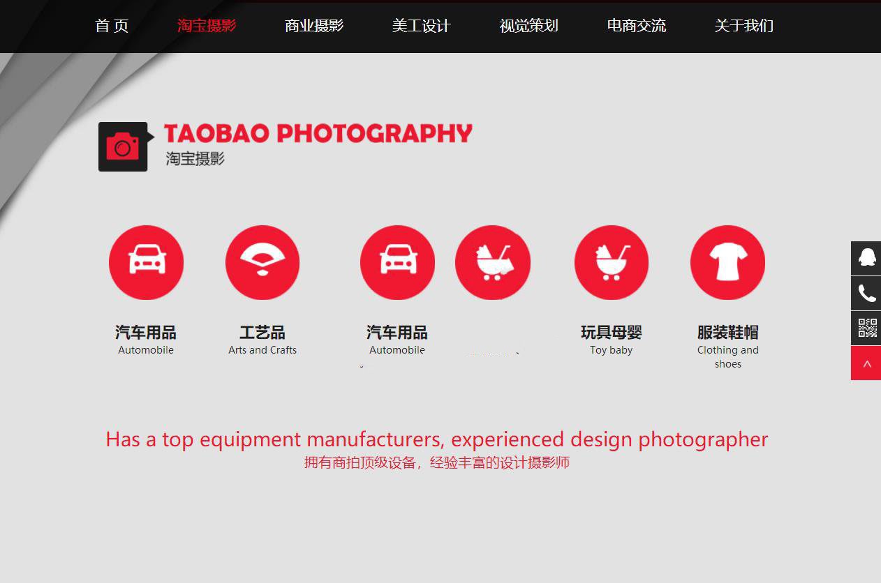 织梦最新内核开发的模板,该模板属于企业通用类、淘宝美工,淘宝摄影、商业摄影、产品摄影、美工设计、店铺装修类企业都可使用,