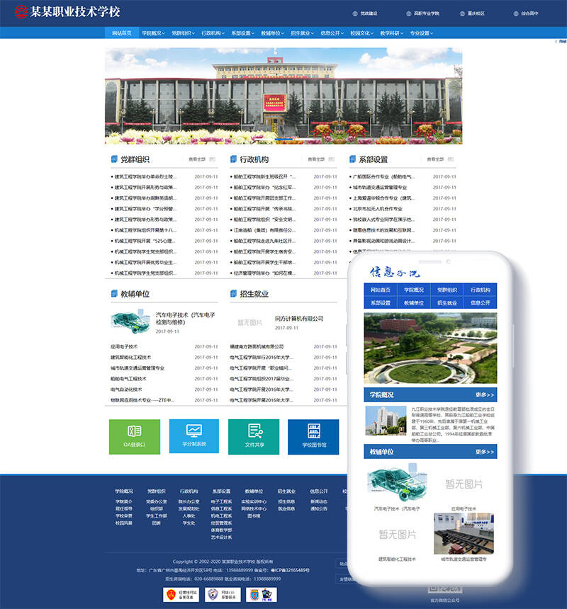 高等院校学院学校类网站织梦模板(带手机端)+PC+wap+利于SEO优化