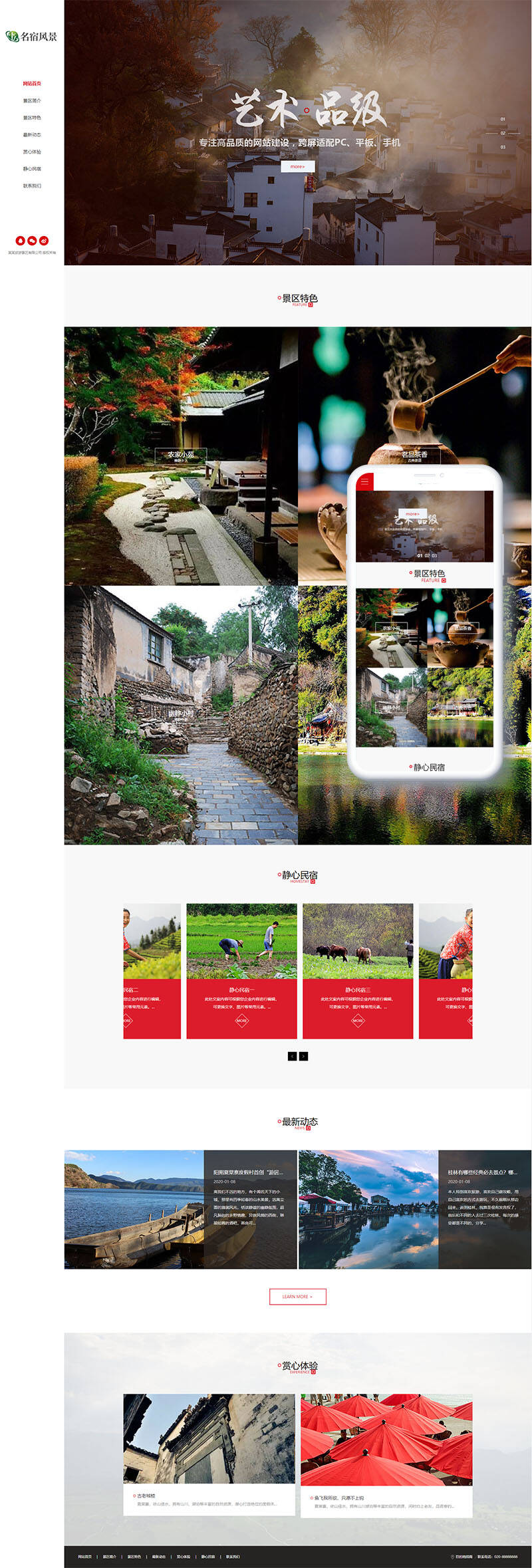 响应式民宿景区旅游类网站织梦模板(自适应手机端)+PC+wap+利于SEO优化