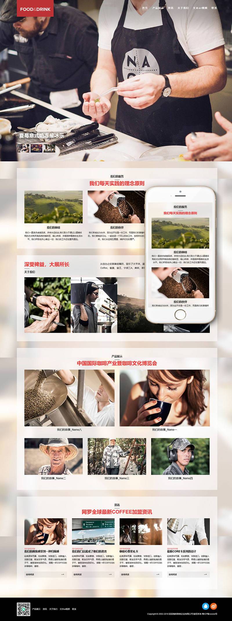 织梦最新内核开发的模板,该模板属于企业通用类、咖啡、奶茶原料制作类企业都可使用,
