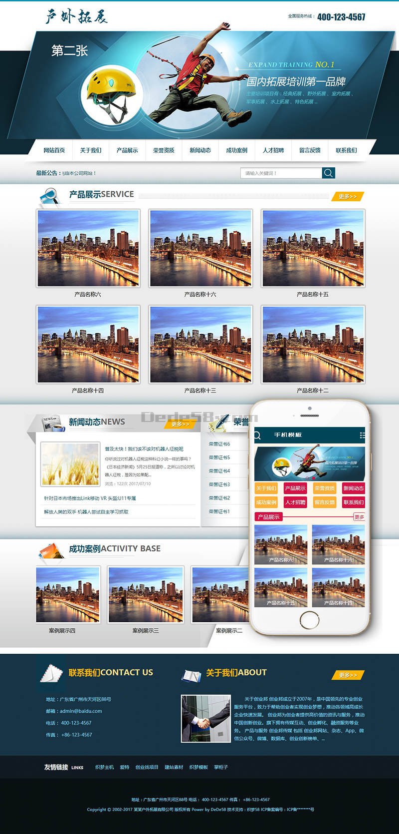 户外水上野外培训拓展类网站织梦模板(带手机端)+PC+移动端+利于SEO优化