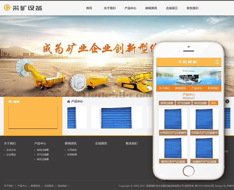 煤矿综合采掘机械设备织梦模板(带手机端)+PC+移动端+利于SEO优化