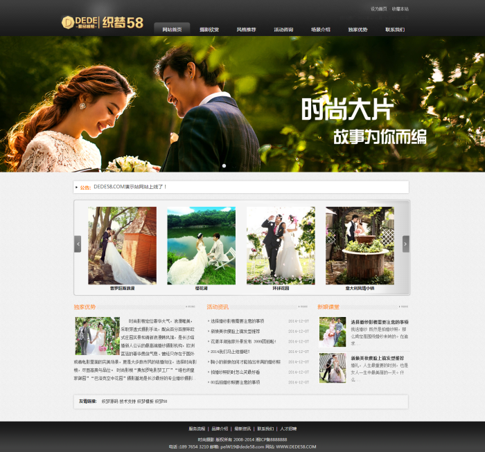 织梦大气影楼摄影企业网站模板,效果相当的炫酷,相当简洁大气高端,模板简单,全部已数据调用,只需后台修改栏目名称即可。
