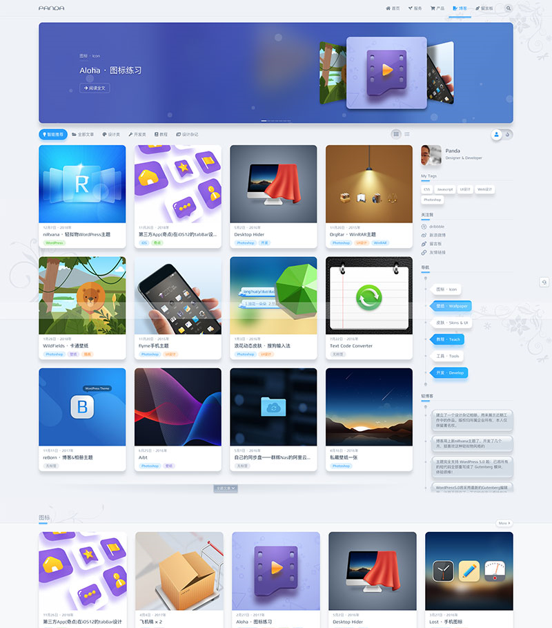 瀑布流 文章列表可选择卡片或列表排序,其中卡片又可设置为普通或瀑布流形式