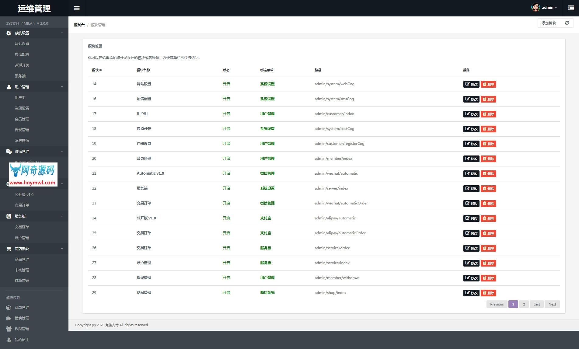 个人免签源码+服务模块强大后台功能全面