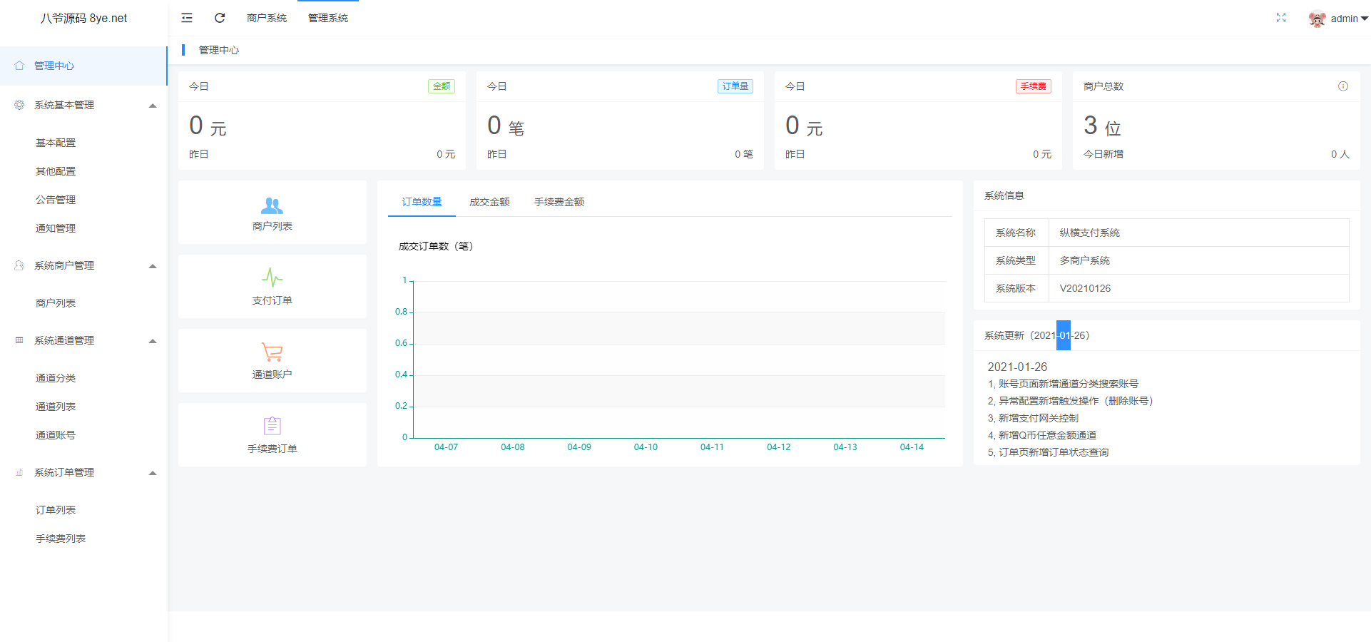 1, 管理系统新增商户指定可用通道