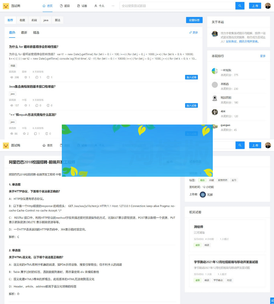 面试鸭一个干净的面试刷题网站!专业面试刷题网站,助你成为面试达人!支持自由组卷、在线刷题、校招社招斩获大厂offer,求职必备!