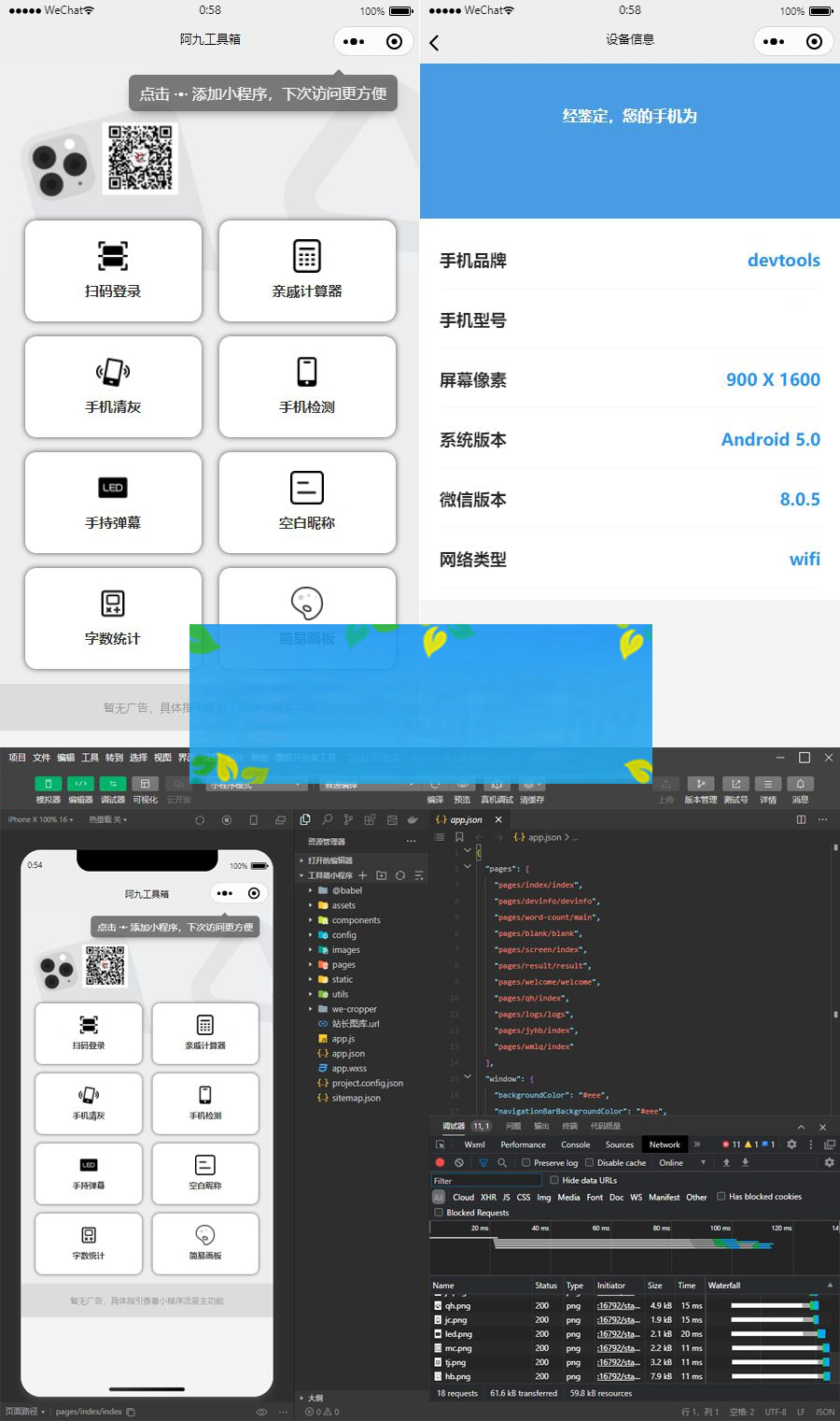 游戏扫码登录多功能工具箱集合微信小程序源码,是一款由多功能集合的一款微信小程序源码,该小程序无需服务器,无需域名所有功能都无需API接口,所以也不用担心功能失效。