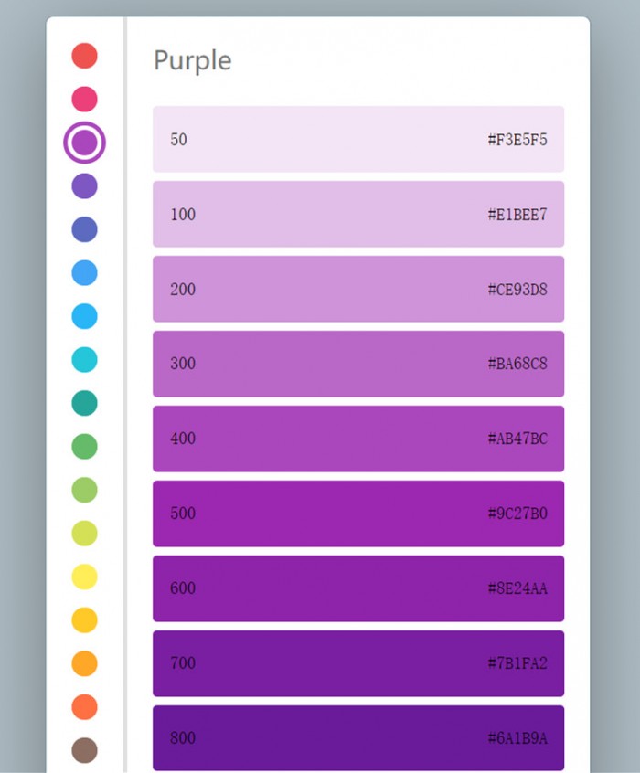 HTML5颜色代码选取器,19种颜色不同灰度选取,鼠标点击复制颜色代码。 声明:本站所有文章,如无特殊说明或标注,均为本站原创发布。任何个人或组织,在未征得本站同意时,禁止复制、盗用、采集、发布本站内容到任何网站、书籍等各类媒体平台。如若本站内容侵犯了原著者的合法权益,可联系我们进行处理。