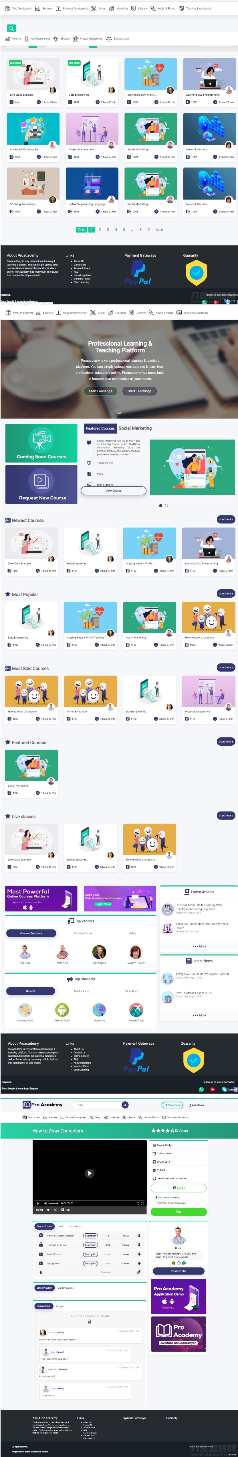 Proacademy是在线教育一体化的解决方案,用于创建类似于Udemy、SkillshAre、Coursera这种在线教育市场。