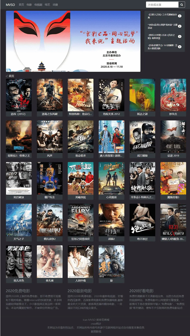 MVSO影视程序,精简UI,魔改超强SEO,程序对接360影视,和可以自己自定义苹果cms资源站接口,程序后端采用layuimini进行实现。