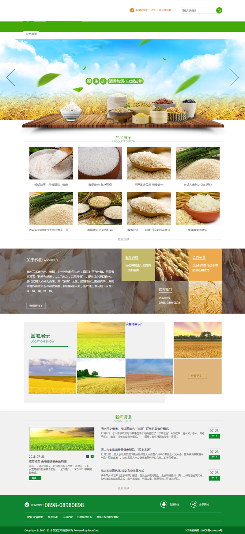 PHP源码_EyouCMSE响应式五谷有机农产品企业网站模板