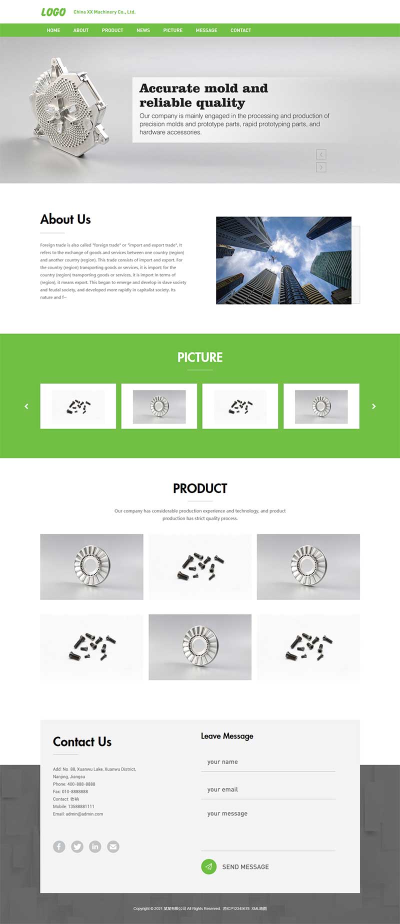 PbootCMS内核开发的网站模板,该模板适用于英文外贸网站模板、五金零件网站等企业,当然其他行业也可以做,只需要把文字图片换成其他行业的即可;