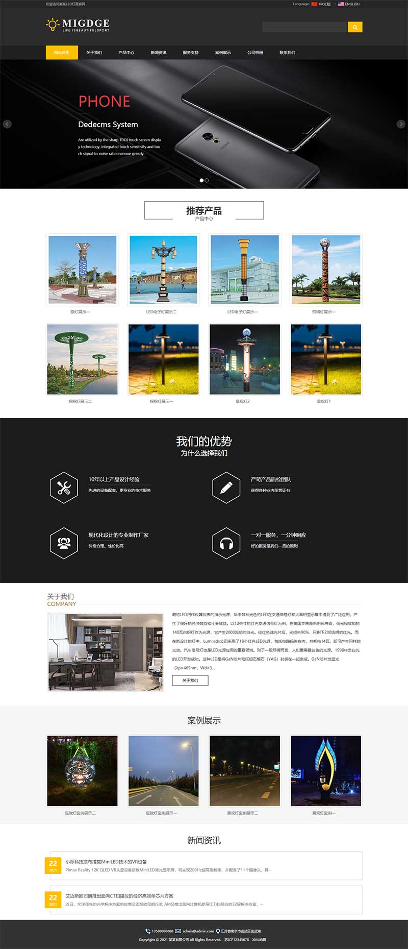 PbootCMS内核开发的网站模板,该模板适用于中英文双语网站、LED照明灯具网站等企业,当然其他行业也可以做,只需要把文字图片换成其他行业的即可;