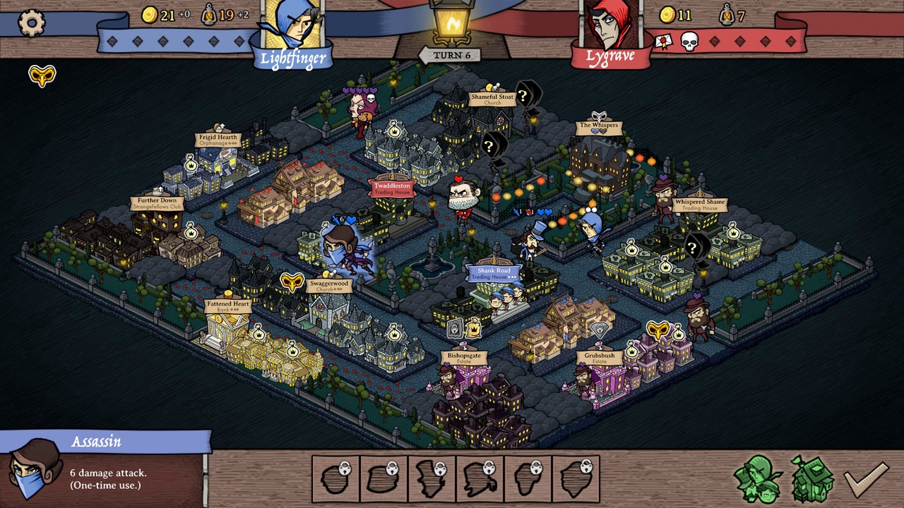 《反英雄》是一款由Tim Conkling开发、Versus Evil发行的策略游戏。游戏包含探索、扩张、开发和消灭四大要素,背景设在一个19世纪的混乱小镇,玩家将扮演一个野心勃勃的坏人,任务是掌管盗贼行会,不择手段夺取小城的大权。