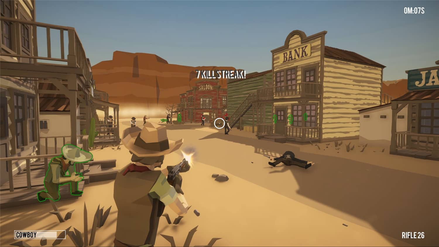 轻量级的西部射击游戏,只有一刻钟的时间也能开一把充分体验突突突的快感。游戏中还加入了其他趣味模式,助你在不知道玩什么好的时候消磨时间。