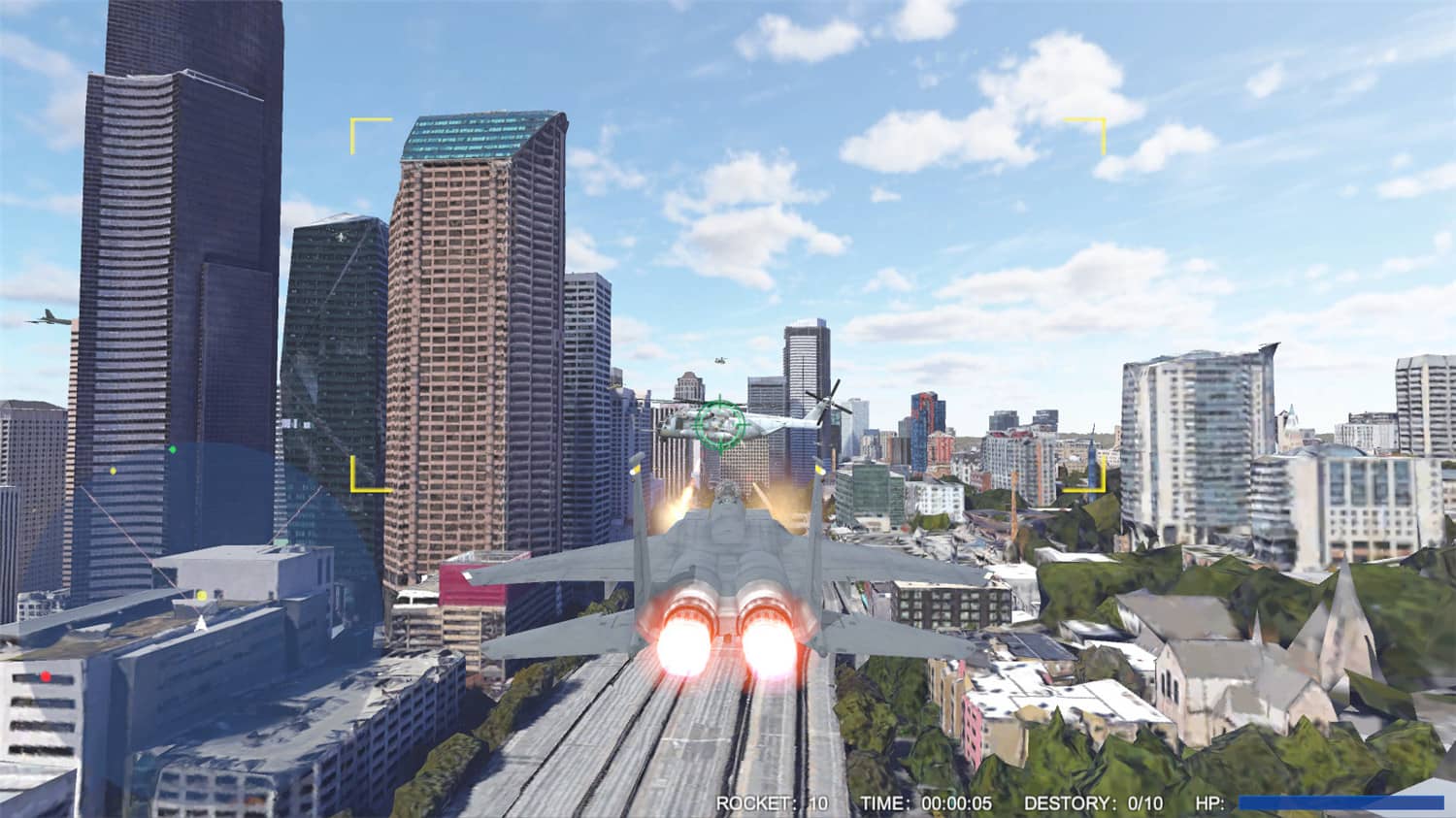 《城市空中决战》是一款街机风格的飞行竞速和射击游戏,游戏中你将驾驶战斗机飞行在真实城市的上空,不但可以在摩天大楼之间进行各种特技飞行,也可以与对手进行激烈的空中竞速和战斗,在快节奏和高强度的对抗中不断挑战自己的飞行和射击技术。