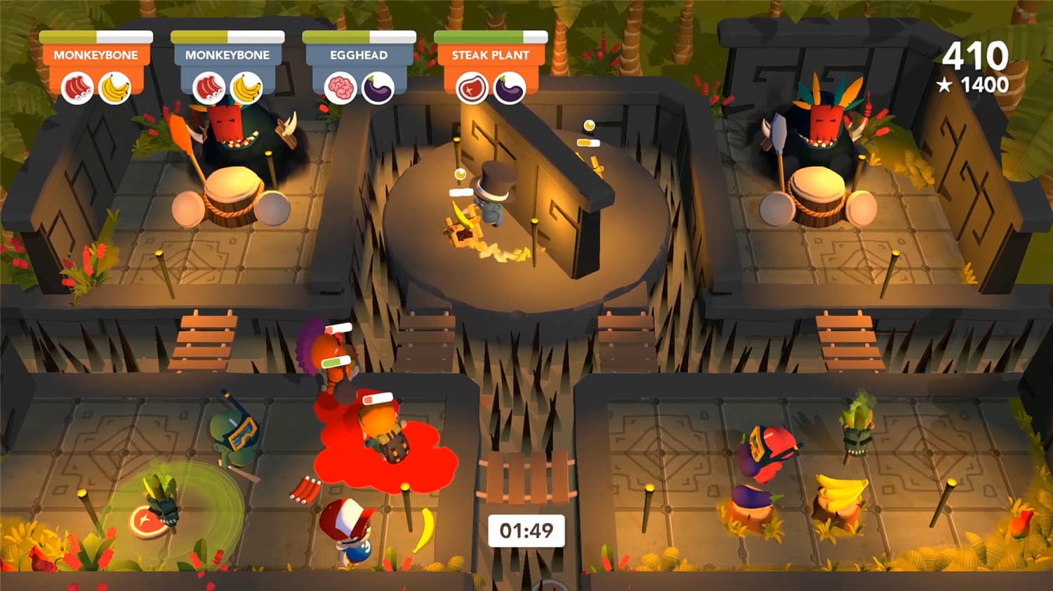 饥饿之神之神的肚子饿了…它想吃你!不过所有的食人族大厨都知道,与其如被当成大餐端上去,不如把别人剁成大餐。快去切碎蔬菜、水果还有游客,在街机模式中与最多4名大厨一起奉上你的神圣大餐吧!