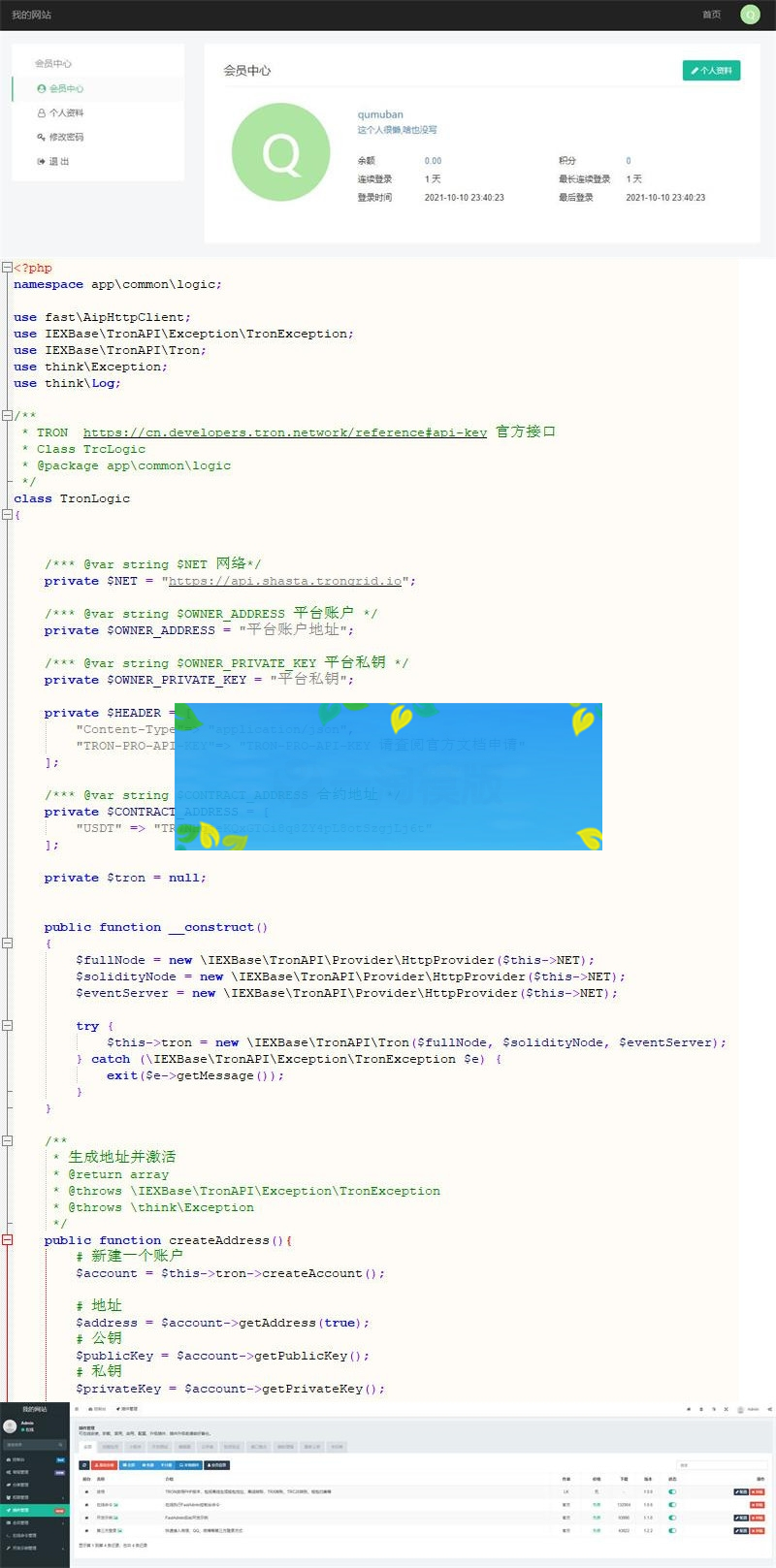 波场php版钱包实例,包含离线钱包生成、激活,TRX、TRC20转账,离线签名,账户归集,充值转账监听,运用fastadmin开发,带sql文件,运用workerman、think-queue做转账监听。
