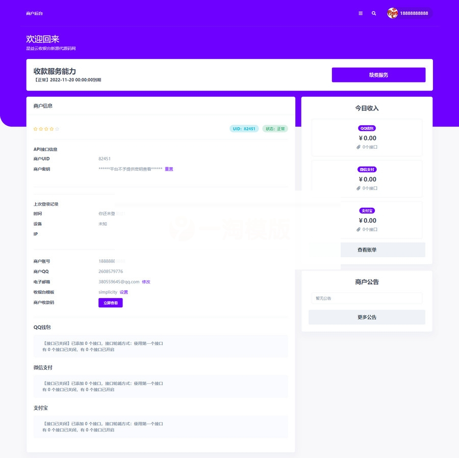 支持对接支付宝、微信支付、QQ钱包、易支付等支付接口