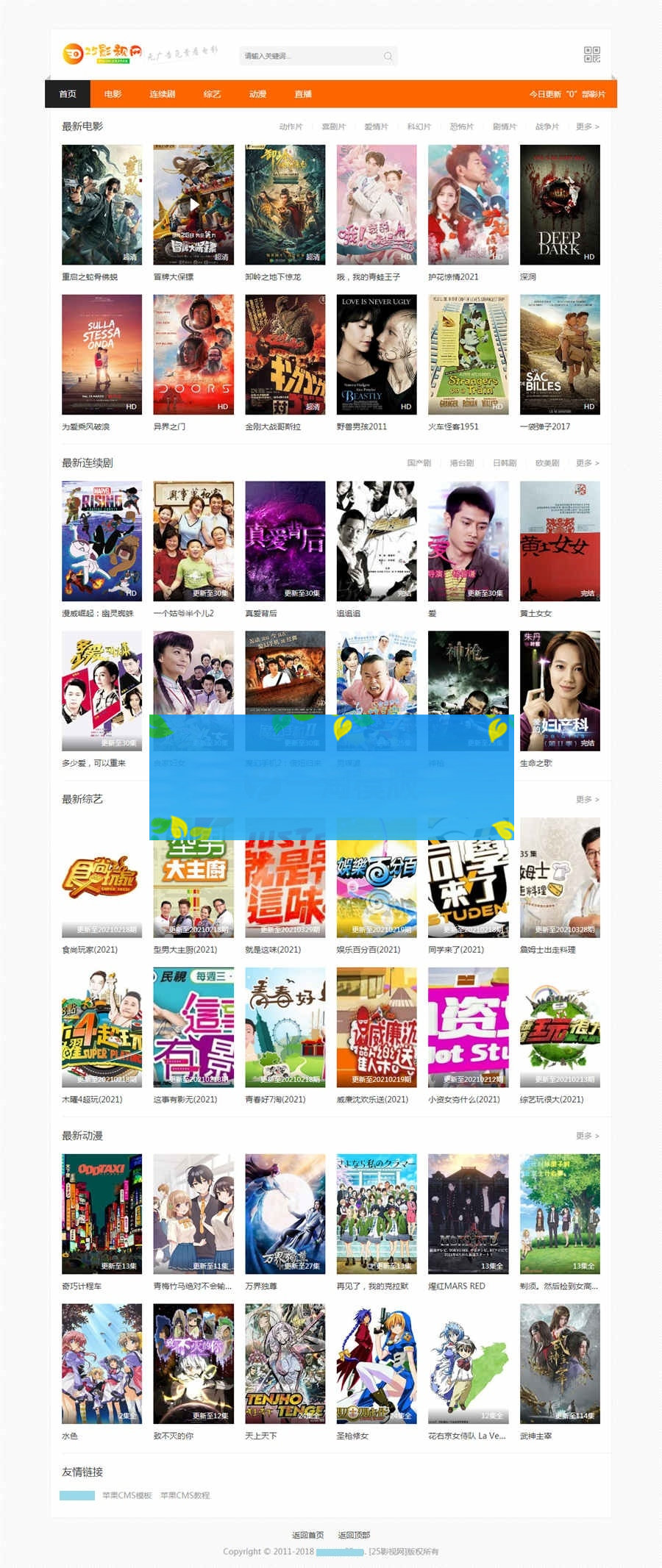 一款橙色风格25影视网主题模板,苹果cmsV10版本,自适应手机端,已测试,完美无错,效果看图。