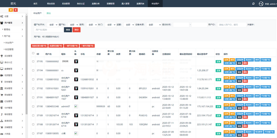 PS:某站1w5的东西,可惜本站只有原生安卓前端,没有苹果前端,后台完整无加密,功能还是很强大的,自带直播端,小视频,社区等都有。