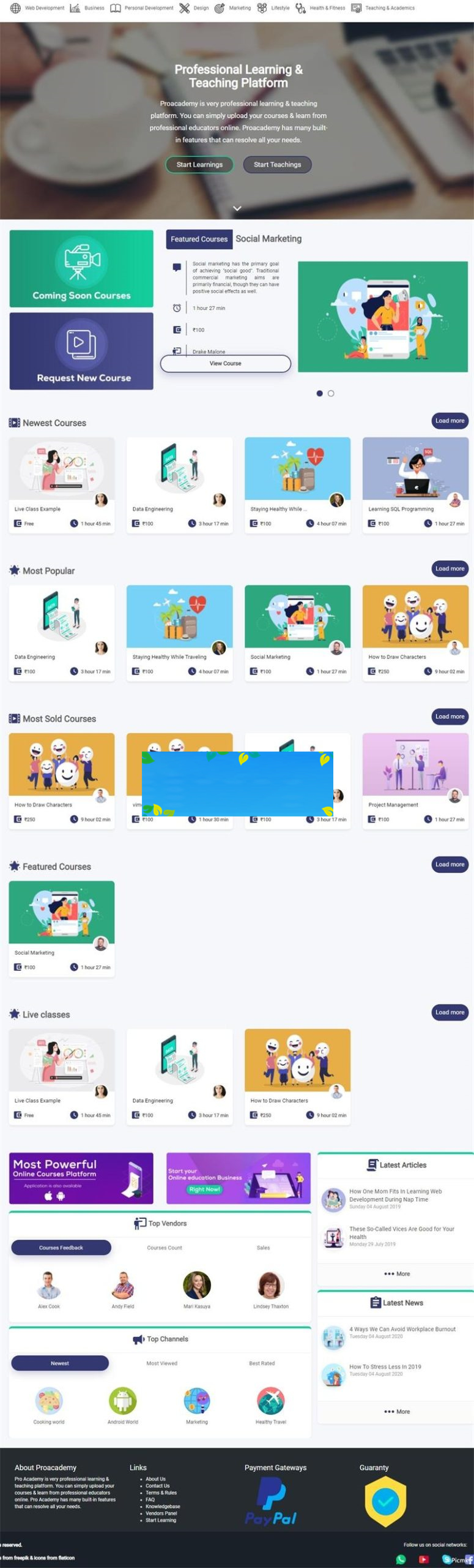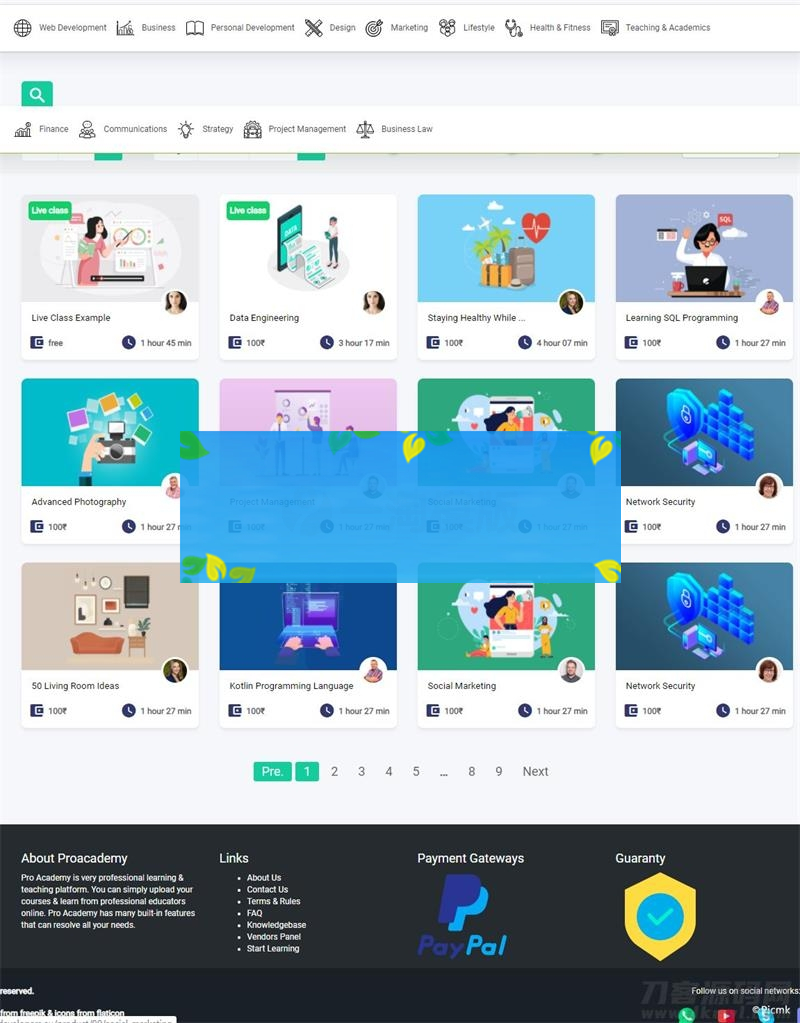 Proacademy是在线教育一体化的解决方案,用于创建类似于Udemy、SkillshAre、Coursera这种在线教育市场。