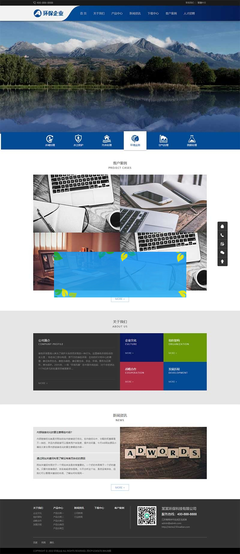 PbootCMS内核开发的网站模板,该模板适用于绿色环保网站、环保科技公司网站等企业,当然其他行业也可以做,只需要把文字图片换成其他行业的即可;
