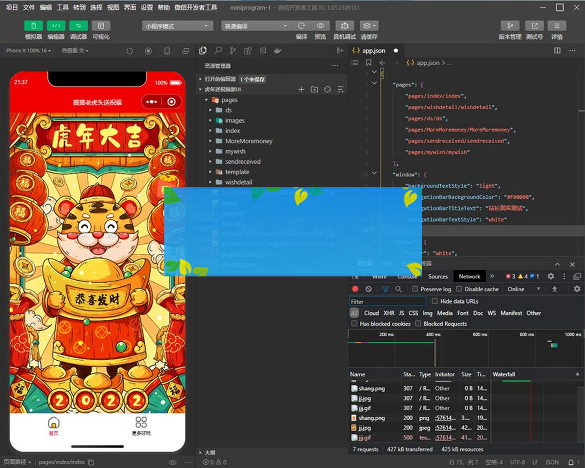 2022虎年春节送祝福微信小程序源码下载,新版UI支持多种流量主,这是一款网友用以前发过的一款端午送祝福改的一款小程序。