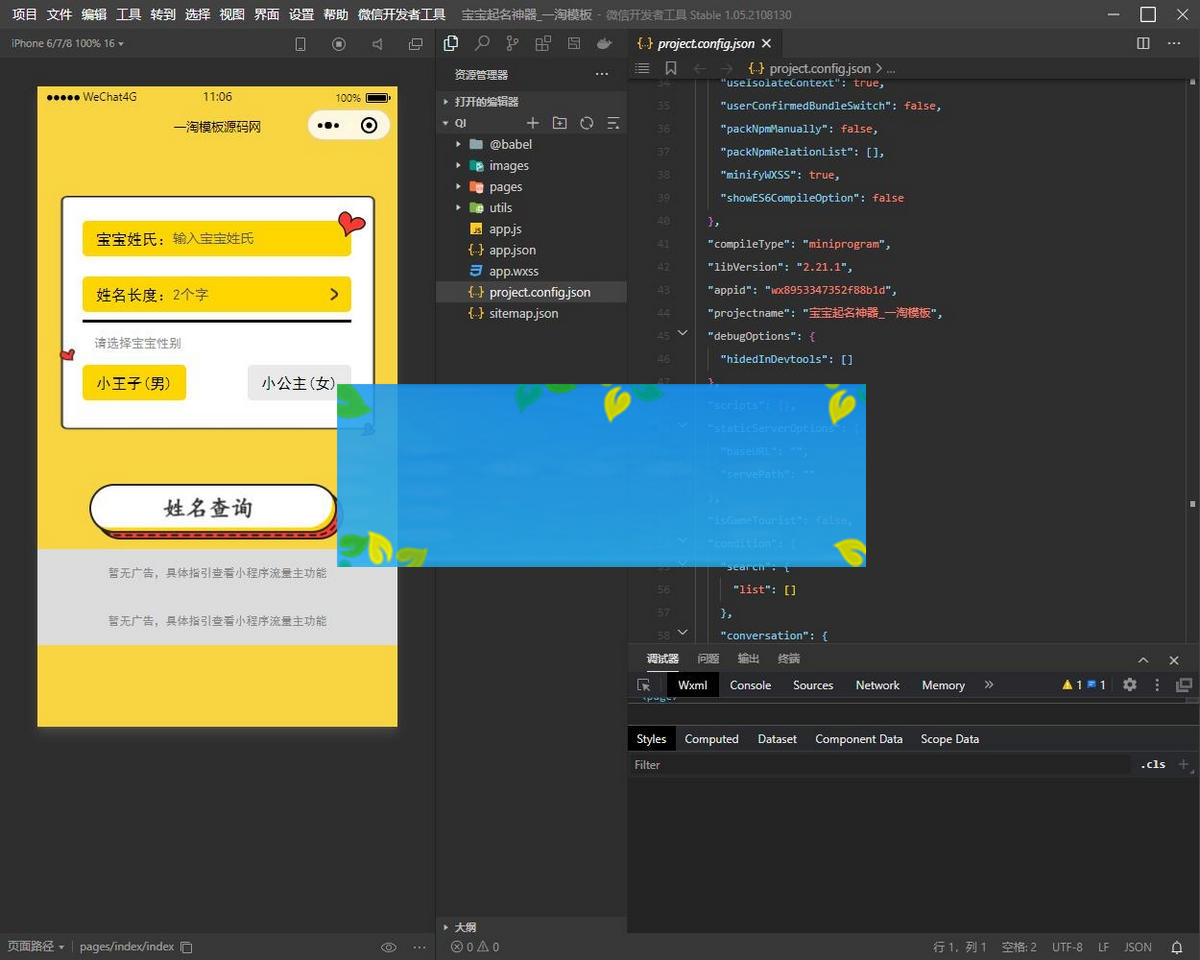 那么这款小程序源码就可以帮到你了,这款小程序支持输入姓氏自动起名。