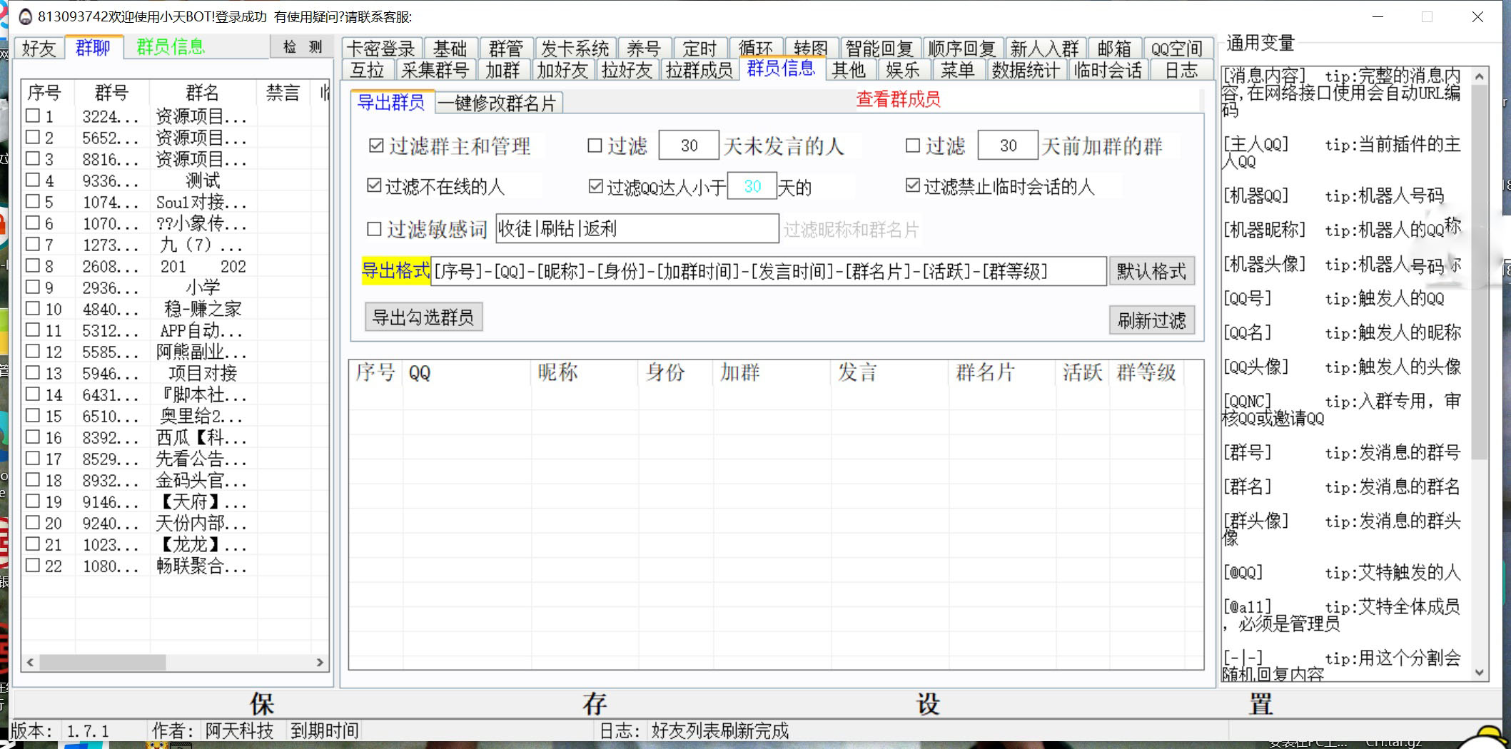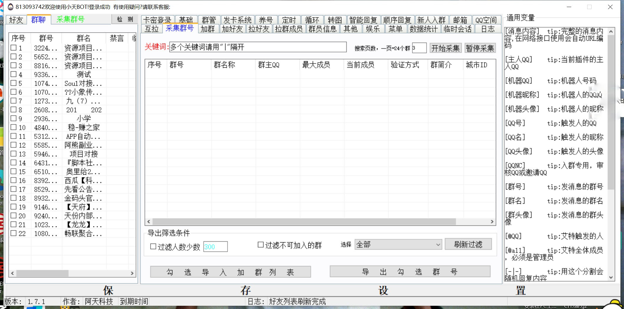 小天QQ智能营销/群管、 发货系统、养号、定时 群发、转发、 设备需求: 电脑(需要win10系统) ![]() ![]()